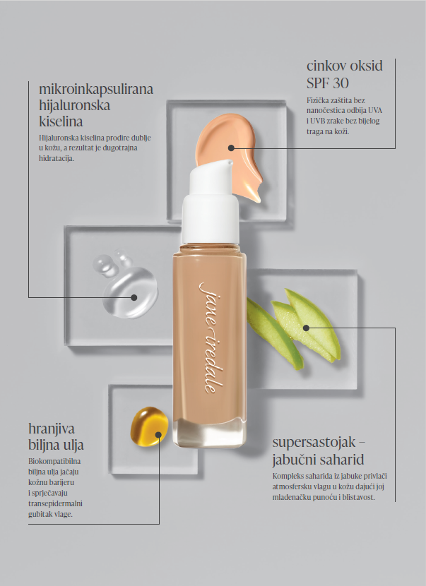 Tekući hidratantni puder s mineralnom (fizičkom) zaštitom širokog spektra (SPF 30) i mikroinkapsuliranom hijauronskom kiselinom. Potiče prirodnu blistavost, lako se nadograđuje te ima srednju pokrivnu moć. Dostupan u 17 nijansi.